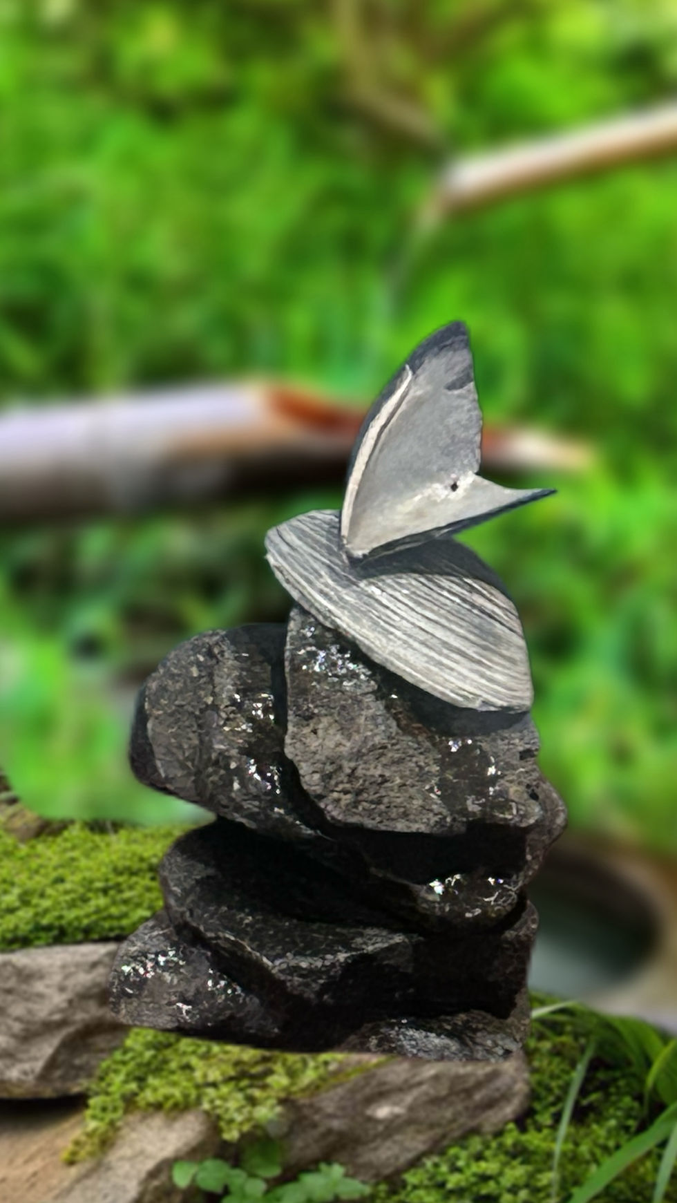 Made from hand-picked, fresh, organic materials like basalt rocks and shells from beaches and creeks, these sensational statues are handcrafted from hours of thought, touch, and magic, curated to deliver a unique, meditative, and serene experience inspired by nature and Japanese aesthetics while adding my own personal story, touch, and intuitive placement by me asking each stone and shell, 'Do you want to be here?' While working on them. Some refuse a spot, some settle instantly. I follow these subtle cues until every element finds its natural home while I improvise a design, responding to natural balance and weight.
